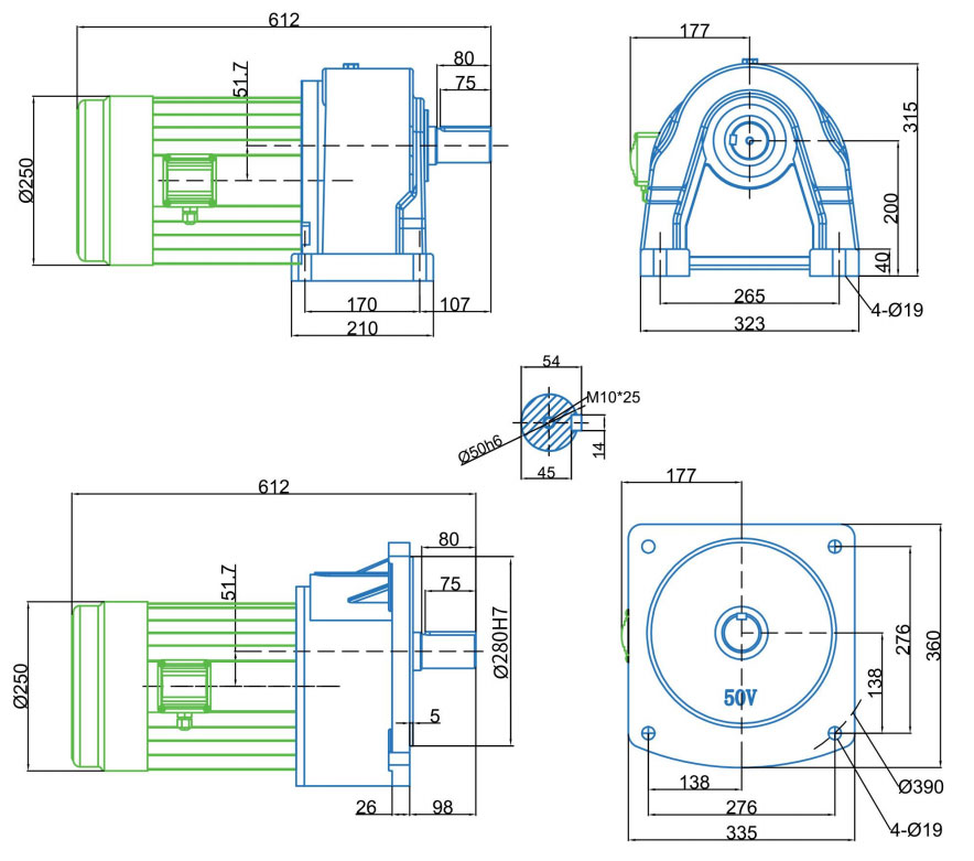 Kelajuan dalam jadual dikira berdasarkan kelajuan dinilai motor pada 50Hz/60Hz, 1420R.Min/1732R.Min